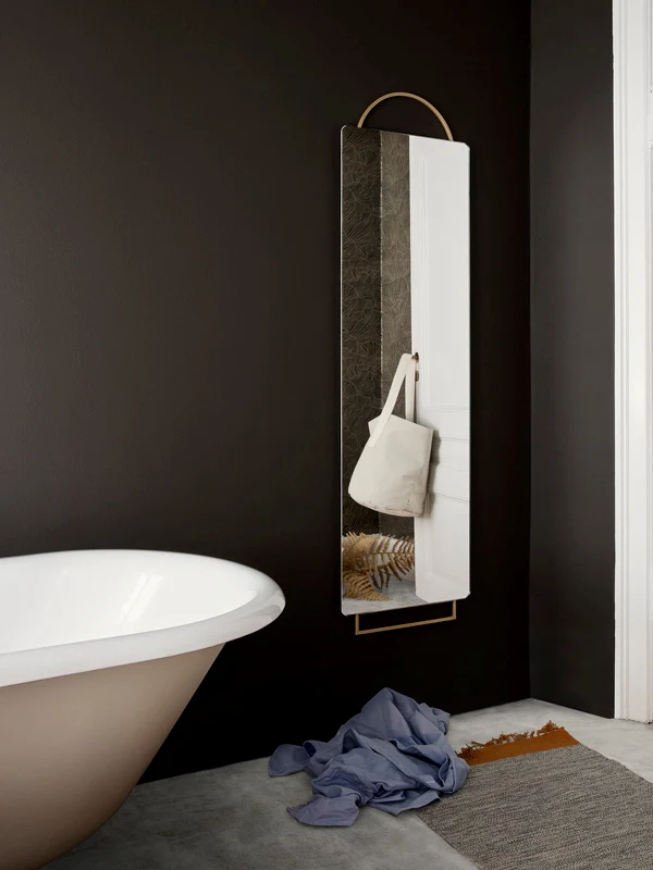 Adorned with an elegant brass mounting this full-size mirror is designed with a clear reference to the world of jewellery. You can place the mirror leaning up against a wall, or you can mount it using the eyelets on the backside.